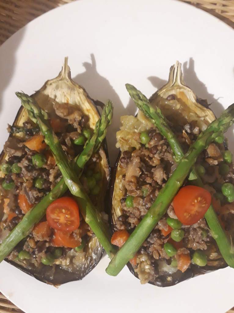 2 thoughts on “Stuffed Aubergines
